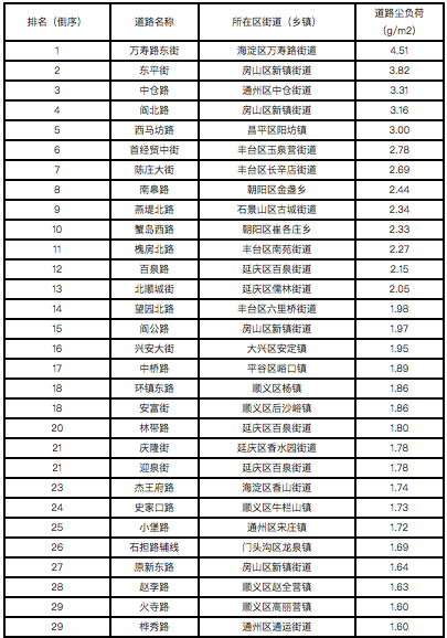 为有效控制道路扬尘,督促属地加强扬尘治理,北京市生态环境局委托第三方机构,2022年6月对本市平原地区273个街道(乡镇)合计1914条道路进行了道路尘负荷监测。结果表明,怀柔区泉河街道、东城区北新桥街道、东城区东华门街道、海淀区八里庄街道、朝阳区东湖街道为全市平原地区道路尘负荷最低的五个街道(乡镇);房山区新镇街道、顺义区高丽营镇、海淀区万寿路街道、海淀区香山街道为全市平原地区道路尘负荷最高的四个街道(乡镇);海淀区万寿路东街、房山区东平街、通州区中仓路为全市平原地区道路尘负荷最高的三条道路。