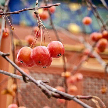 雪落智化寺 海棠别样红