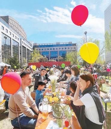 亮马河畔花园内的春日游园会(阎彤 摄)