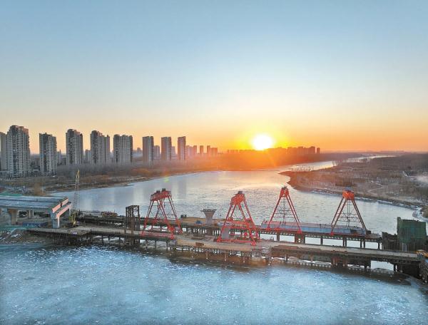 1月15日拍摄的建设中的厂通路潮白河大桥。厂通路潮白河大桥工程建成后,将有效推动京津冀协同发展,打通道路堵点,完善交通基础设施,加强跨省通行能力。(邢广利 摄)