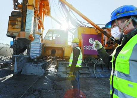 北京建工集团承建城市副中心三大建筑之一的剧院项目,复工以来的主要工作是TRD止水帷幕施工。(白继开摄)