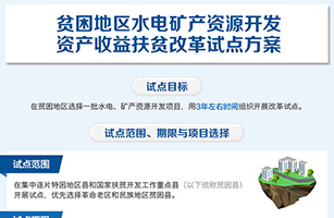 国务院办公厅日前印发《贫困地区水电矿产资源开发资产收益扶贫改革试点方案》。《方案》提出,从2016年底至2019年底,在集中连片特困地区县和国家扶贫开发工作重点县选择一批水电、矿产资源开发项目,开展资产收益扶贫改革试点。