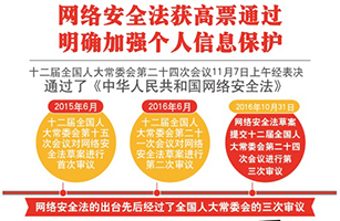 图表:网络安全法获高票通过 明确加强个人信息保护