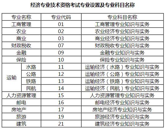 调整后,经济专业技术资格考试为12个专业,专业设置及专业科目名称见附表。